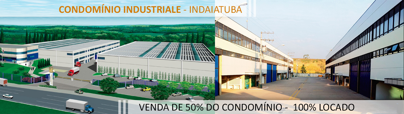 Venda de 50% do condomínio empresarial Industriale. 100% locado para importantes empresas logísticas e industriais, o imóvel é dividido em 11 módulos reversíveis com 1.250,00 m² de área útil e 1.535,00 m² de área total. O condomínio Industriale está localizado em Indaiatuba – SP a 15 minutos do aeroporto de Viracopos, no eixo comercial entre Sorocaba, Campinas e São Paulo.