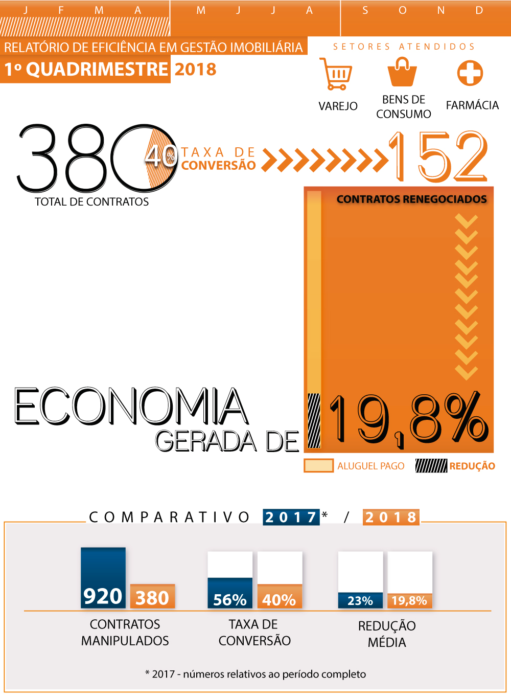 Levando em conta que no maior volume das negociações realizadas em 2017 se buscou uma repactuação dos valores locatícios, no primeiro quadrimestre de 2018 a estratégia para continuar buscando o equilíbrio financeiro das lojas físicas foi, além de repactuar, trabalhar com descontos temporários.